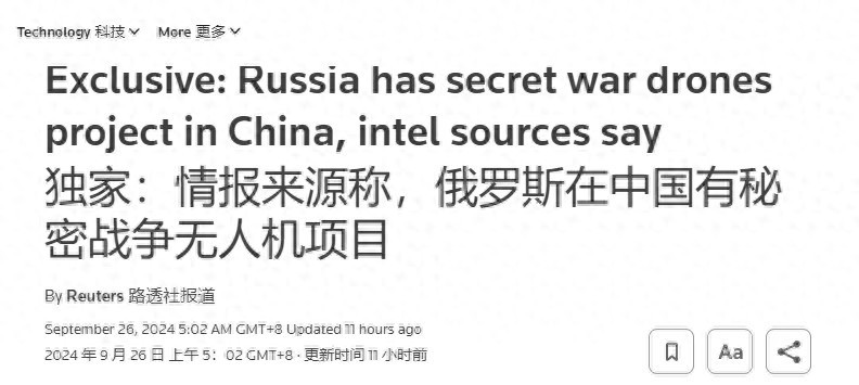 这次路透社的报道也是熟悉的味道:上文路透社还在信誓旦旦地保证有“证据”证明俄罗斯在中国建立无人机工厂,但下文立刻又改口说因为所谓的“信息敏感性”,接受采访的消息人士不能透露文件细节,包括确切日期。