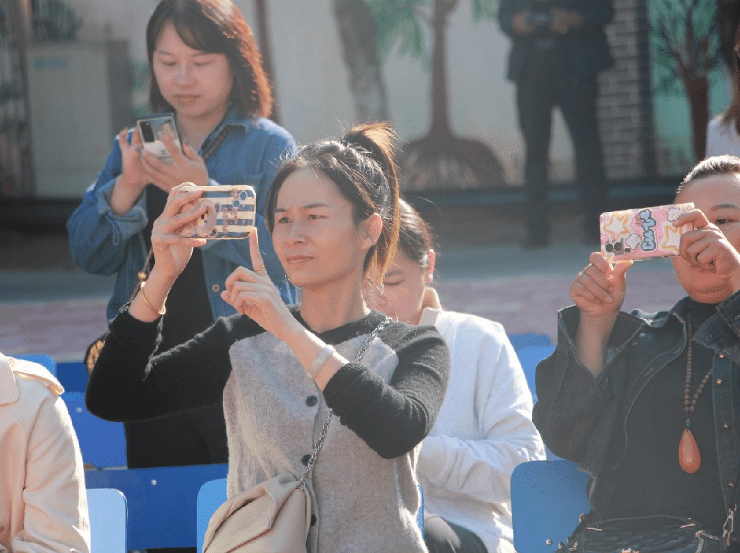 家长认真观看并用手机记录孩子们精彩表演