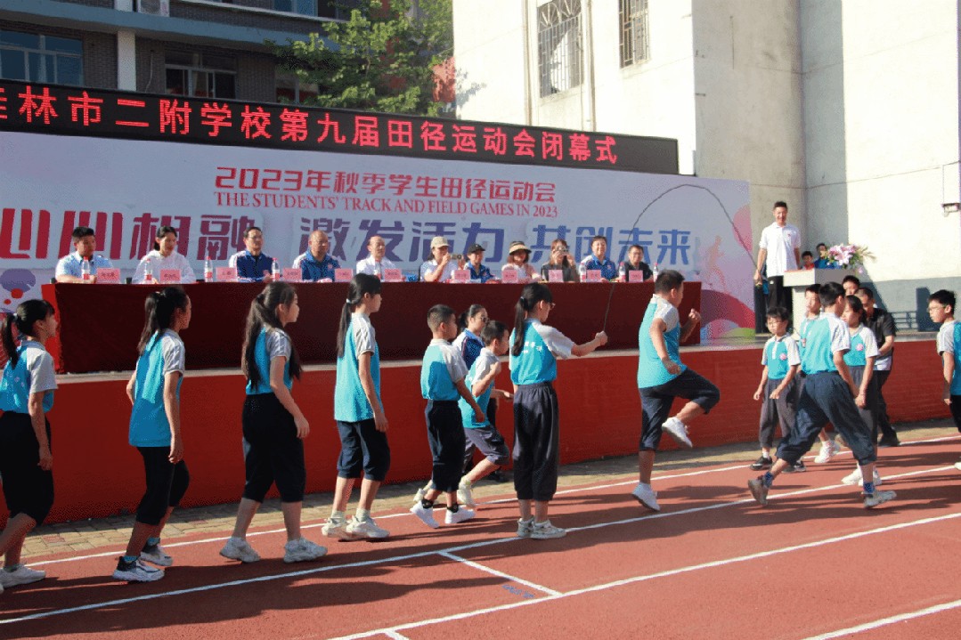 心心相融,激发活力,共创未来。本次运动会的成功举办是桂林市二附学校办学水平、办学质量的一次大检阅,是学校良好校风、学风的又一次集中展示。同时,也为二附学子提供了一个自我管理、自主发展、展示个性特长的大舞台,是对同学们心理素质,身体素质,体育运动水平的一次验收。