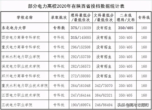 除了东电以外,其余8所学校均为专科学校,如上图所示。西安电力高等专科学校的录取分数较高,最低分已接近了二批次本科线,其次是重庆电力高等专科学校等,分数最低的是三峡电力职业学院,最低分仅高出专科线30分,低分高考生可重点考虑。