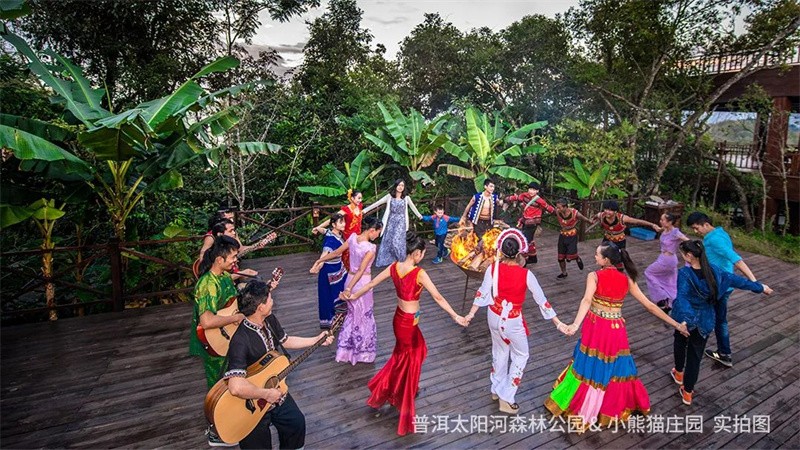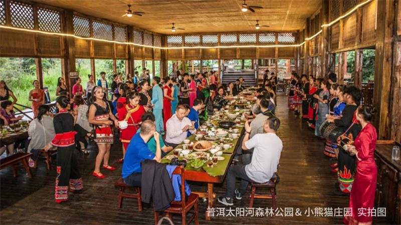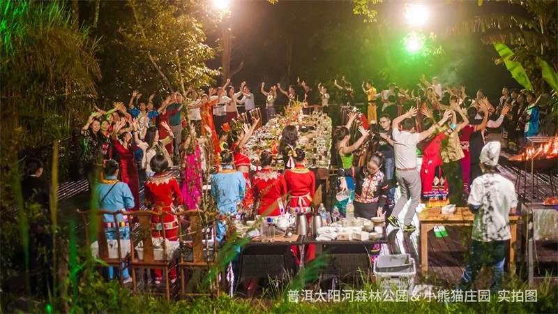 新年美食不可错过!白天,体验小簸箕餐、傣族手抓饭“森林氧餐”,领略别样的饮食风情;晚上,在小熊猫庄园湿地餐厅用餐,与身着绚丽服饰的哈尼族、彝族等民族演员们合唱跳舞,一起狂欢共贺新年!