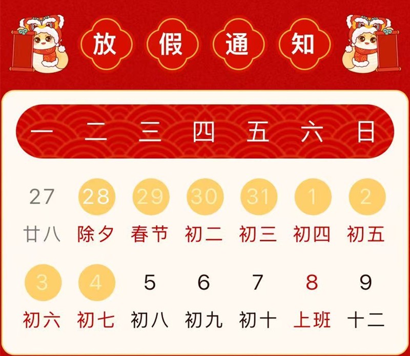 8天春节长假