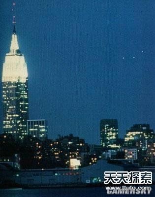 1984年5月9日由飞利浦-奥雷(Felippe Orego)拍摄于美国纽约市曼哈顿,照片显示,在曼哈顿的天空轮廓线上面出现了三个光点。
