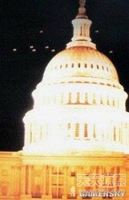 1952年,美国很多人在华盛顿看到一些UFO从美国国会大厦上空飞过,有人将这个画面拍了下来。