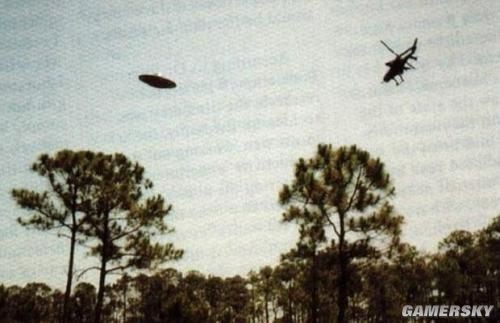 1996年由一名现在无法确认姓名的摄影师拍摄,照片显示在美国佛罗里达州的某个地方一架军用直升机正在追逐一个不明飞行物。