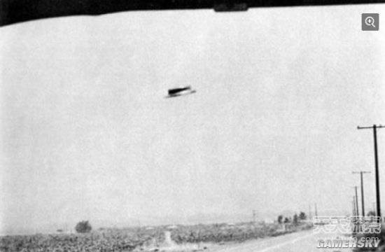 1957年9月,一名试飞员在美国加利福尼亚州爱德华兹空军基地附近拍摄到这张照片。照片显示,一个UFO在跟踪一架B-57喷气式轰炸机。