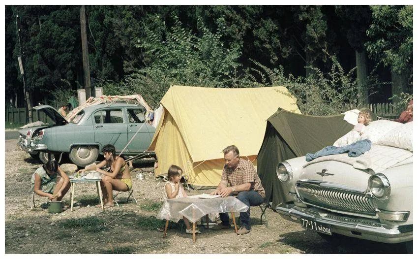 这张照片展现了1971年8月1日美国汽车露营地的场景。当时,露营在美国逐渐流行,成为人们亲近自然、放松休闲的方式。画面中,人们在汽车旁搭起帐篷,进行野炊等活动,体现了当时美国家庭享受户外生活的氛围 。