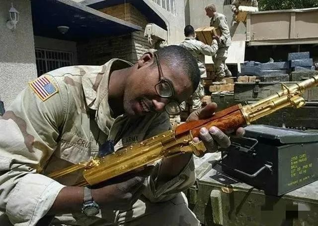 2003年,萨达姆落入美军之手。在对萨达姆财产进行清查时,美军为其奢靡生活之程度深感震惊。萨达姆名下,豪宅鳞次栉比,游艇奢华无比,金条堆积如山。尤为引人瞩目的是,其收藏中有一把黄金打造的AK步枪,工艺精湛,彰显出极度的奢华,成为萨达姆奢华生活的典型象征,令人过目难忘。