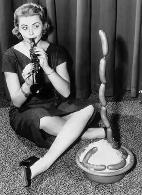 1956 年,于美国拍摄的一则广告中,模特以耍蛇人的形象出镜,展开了一场特别的演绎 。