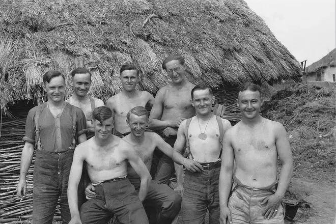 1943 年的那个夏天,在苏联别尔哥罗德的土地上,国防军第 167 步兵师的士兵们全然没了战场上的紧张模样。你看他们,一个个袒露着膀子,大大咧咧地凑在一起合影留念。嘿,那神态、那架势,看起来可真是逍遥自在、快活无比,仿佛压根不是身处战争之地,倒像是一场轻松的聚会!