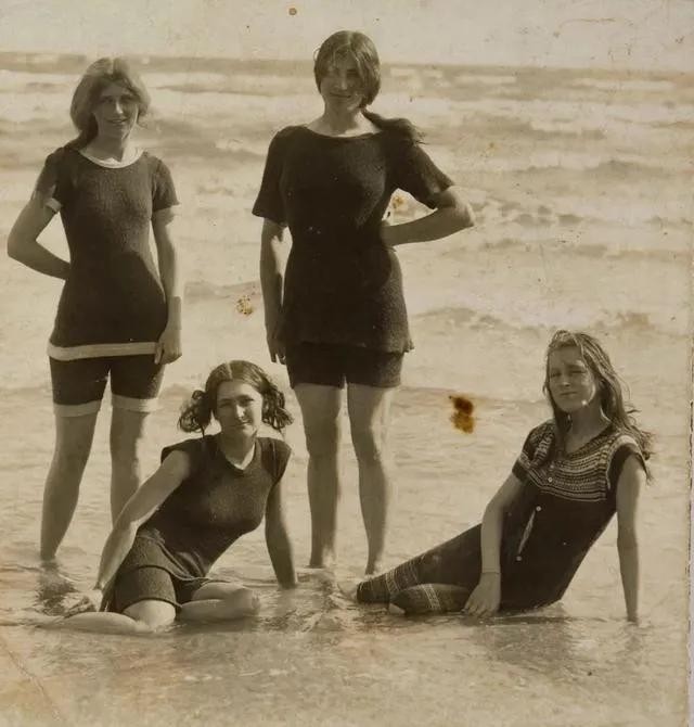 1910年,澳大利亚墨尔本海滩的女性。当时比基尼还没有流行,女性穿着还相对保守!