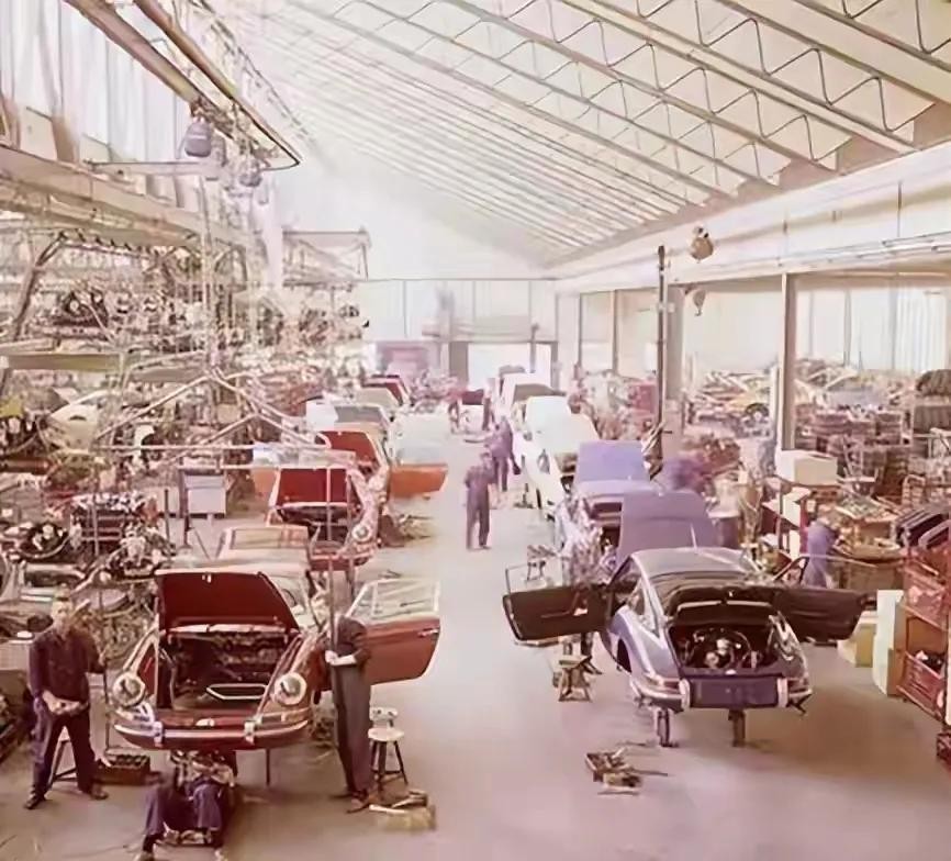 1970 年,在斯图加特工厂内,保时捷有条不紊地在组装线上进行着组装工作 。