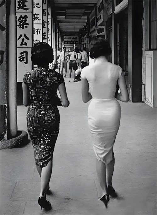 1929 年,旗袍荣膺国家礼服之一席。早期旗袍下身宽松,后受欧美服装影响,修身款成为潮流,能完美展现女性的婀娜曲线。街头两位穿旗袍的闺蜜,身姿尽显迷人魅力 。
