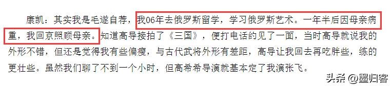 正巧这时他得知高希希导演要筹备拍摄《新三国演义》,心怀演员梦和英雄梦的康凯立刻和他联系。