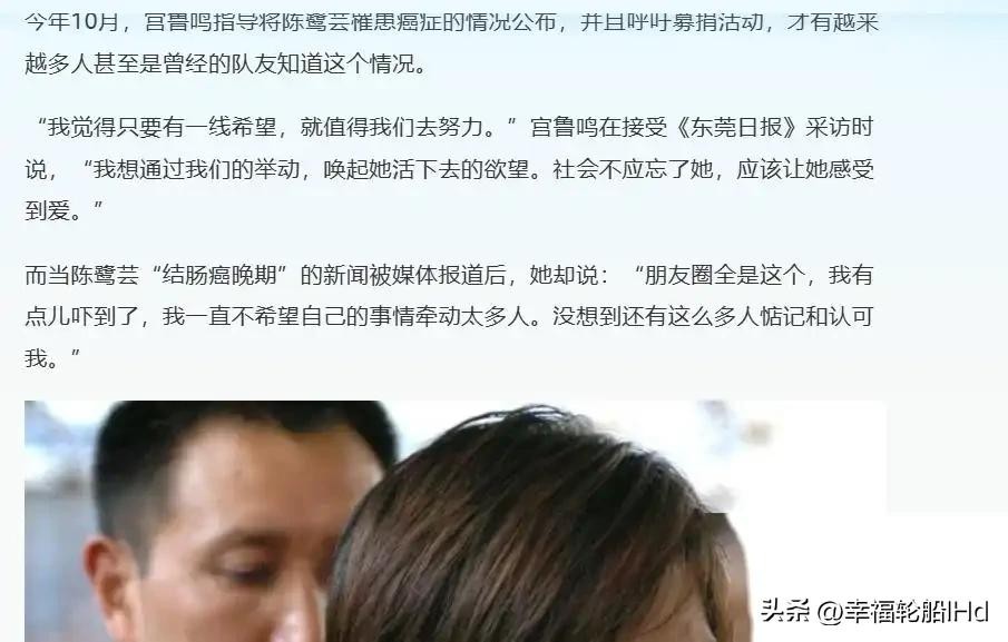 宫鲁鸣曾公开为陈鹭芸发起募捐倡议,虽然陈鹭芸一再拒绝,但最终还是在大家的劝说下接受了。这个募捐活动得到了广泛的支持,最终募集到了50多万元的善款。这些钱虽然不多,但足以让陈鹭芸感受到社会的关爱。