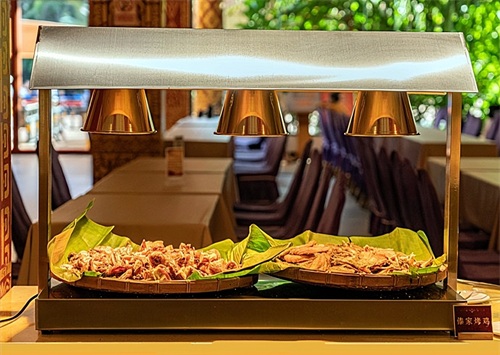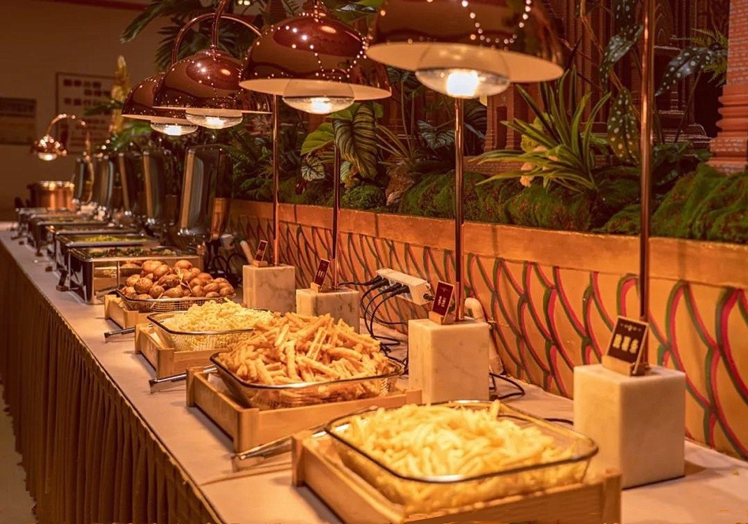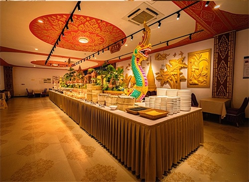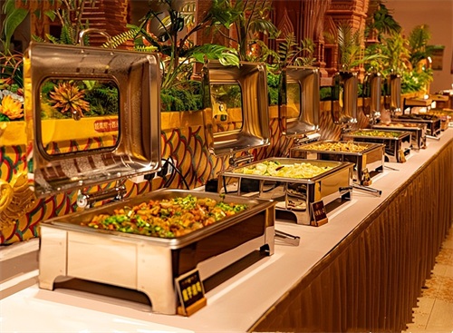 文艺演出之前,先来到自助餐厅。享用丰盛的晚餐。晚餐颇具傣族特色,有菜品、甜品、饮品、面点等共30多种,食材均选取新鲜时令蔬果,采用传统手法烹制,让您体验纯粹的民族特色饮食文化。