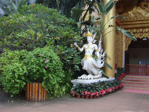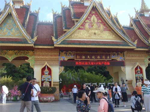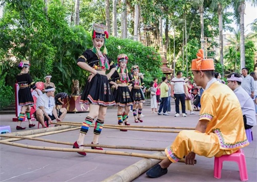 傍晚时分我们走进曼听花园,身穿艳丽的民族服饰的姑娘,用隆重的迎宾仪式欢迎来宾。广场上古老的傣族打击乐响起,各族姑娘伴着音乐跳着迎宾舞。人们可以互动跳起竹竿舞,感受西双版纳浓郁的民族风情。