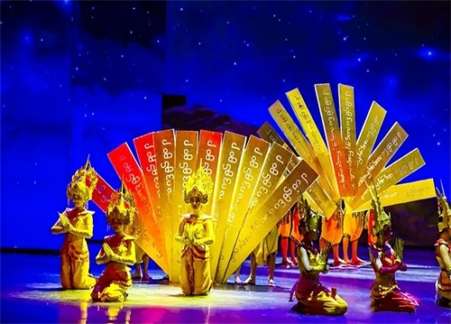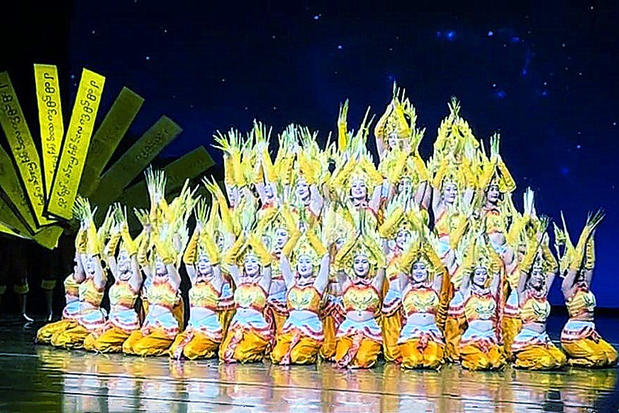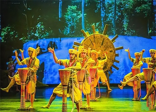 民族歌舞节目共分为三大篇章:共饮一江水、贝叶之光、西双版纳之韵。分别展示了澜沧江·湄公河流域六个国家的风土人情;傣族古老的舞蹈文化及书写历史的贝叶经文化;展现了西双版纳各民族的生活、爱情、服饰等,体现了少数民族多元多彩的文化。