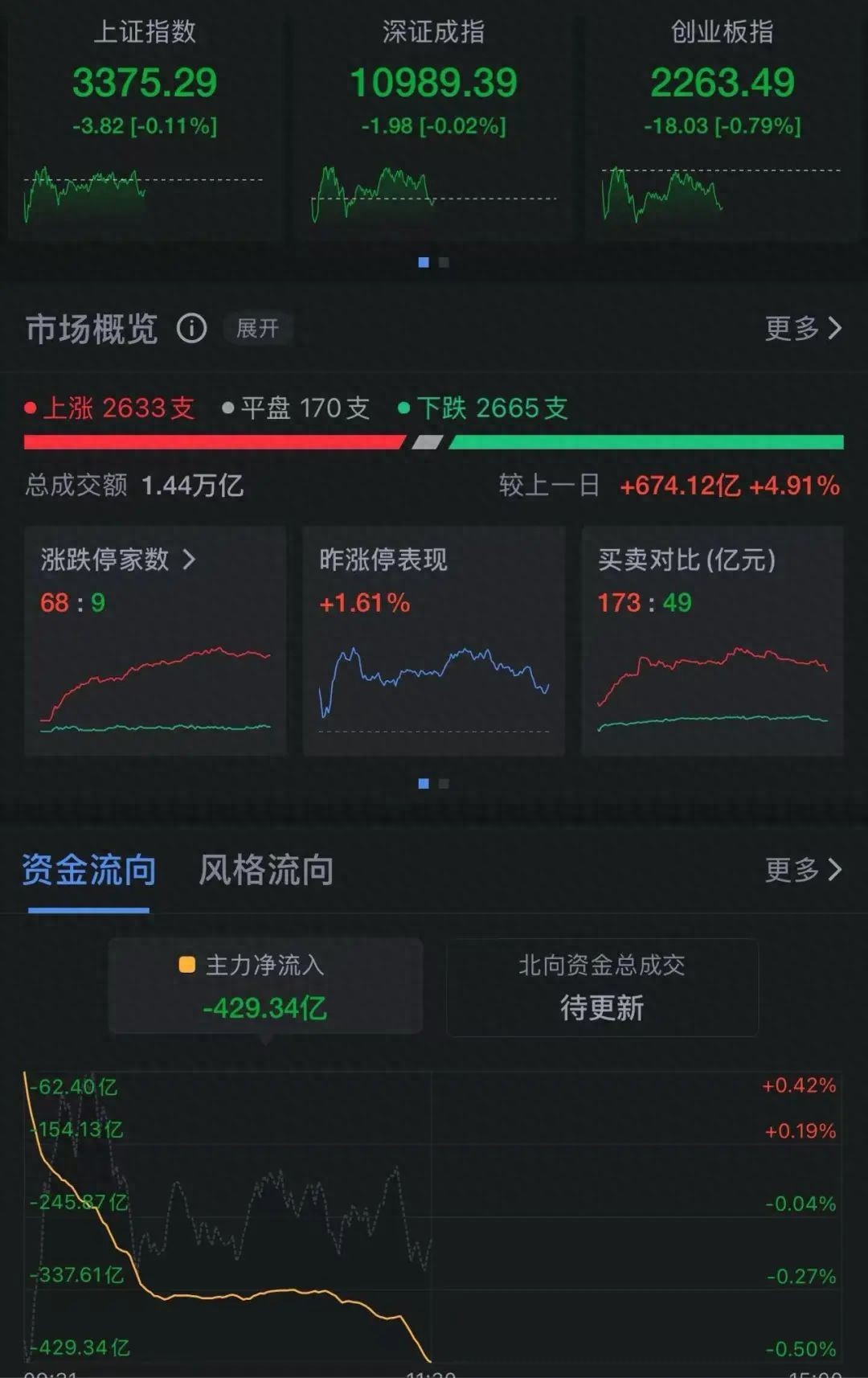 2月24日,市场早盘震荡调整,创业板指领跌。截至午间收盘,沪指跌0.11%,深成指跌0.02%,创业板指跌0.79%。