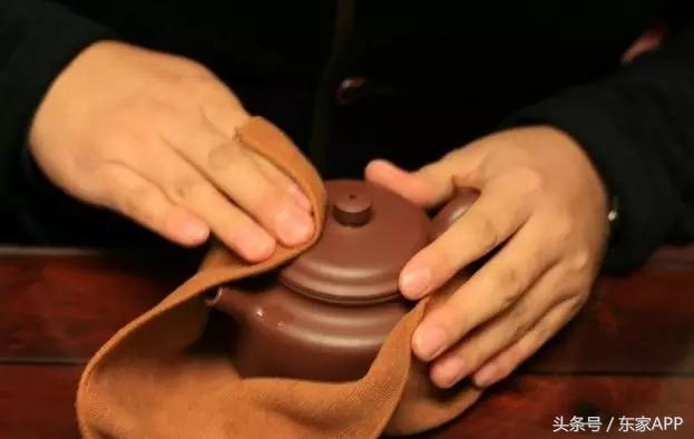 壶表淋到茶汁后,用软毛小刷子,将壶中积茶稍稍刷洗,用开水冲净,再用清洁的茶巾稍加擦试即可,不推荐不断地推搓,用手搓容易留下油脂,用布过度搓,一不小心可能损坏壶。