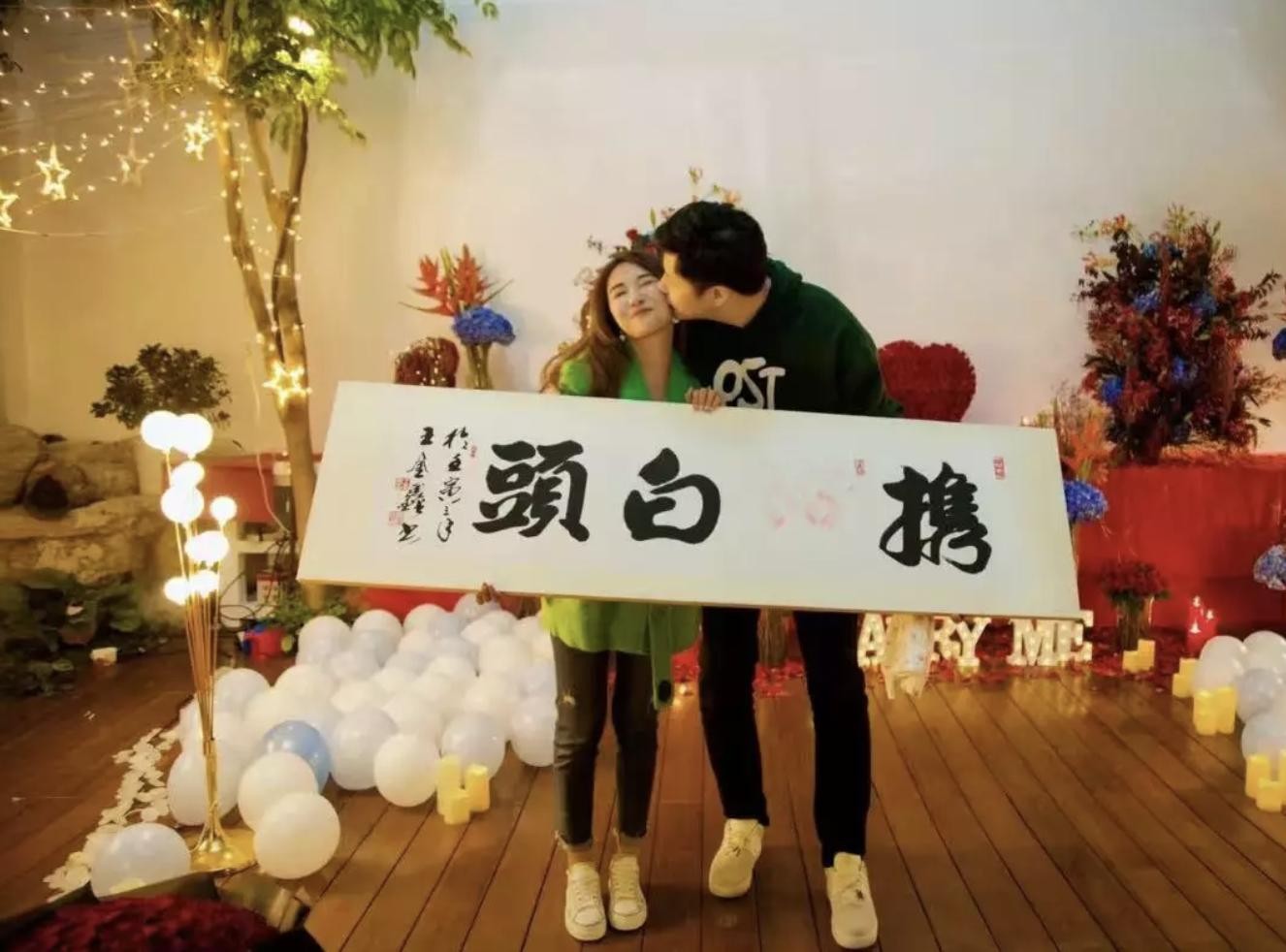 青梅竹马的他们相恋9年,在去年11月举行了盛大的求婚典礼,两人才刚23岁。