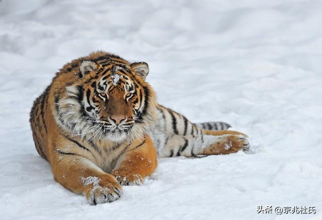 雪地里晒太阳的东北虎