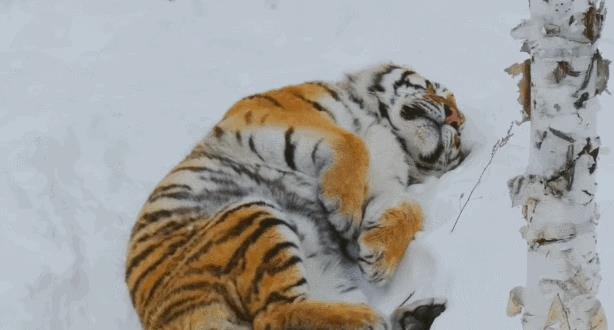 雪地里打滚的东北虎