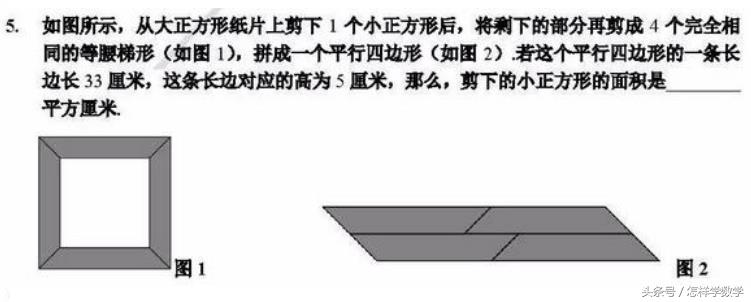 点评:题目有新意,考察了图形的位移,难度不大。平行四边形的底边长是内外两个正方形的边长和,高是两个正方形的边长差。
