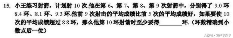 点评:不明白这道题为什么会在压轴。如果对平均数的性质熟练的话,不超过1分钟就能算出来了。算是课堂内容的正常延伸吧。