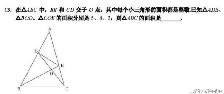 点评:三角形的内部交点是一个很好的题目。它只需要运用最基本的面积公式,却可以考验做题人的识图和思维能力。