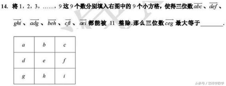 解题的思路其实很清晰,运用11的倍数的性质,再加上数阵的技巧,找到其中关键的一个数或者一组数。但是做题做到这里,剩下的时间肯定不多了,要在这点时间里把题目做出来,并不容易。