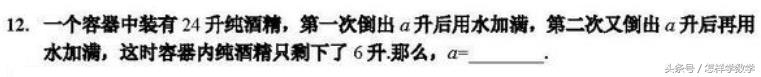 这道题其实有一种函数的思想,把倒水再加满看作f(x),那么题目就是f(f(x))=x/4。