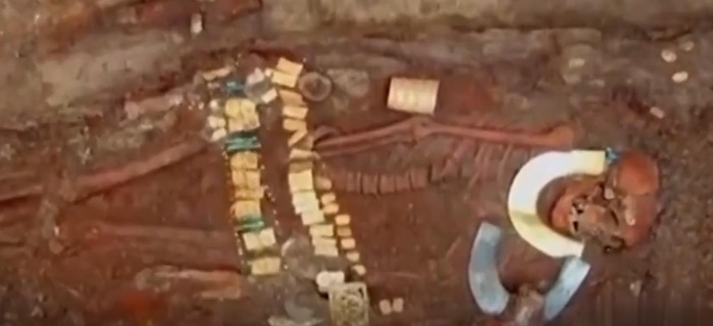 2006年甘肃马家塬出土了一座战国时期的古墓葬,其中发现了三具披金戴银的尸骨,每一具尸骨身上的金器都多达40余件。