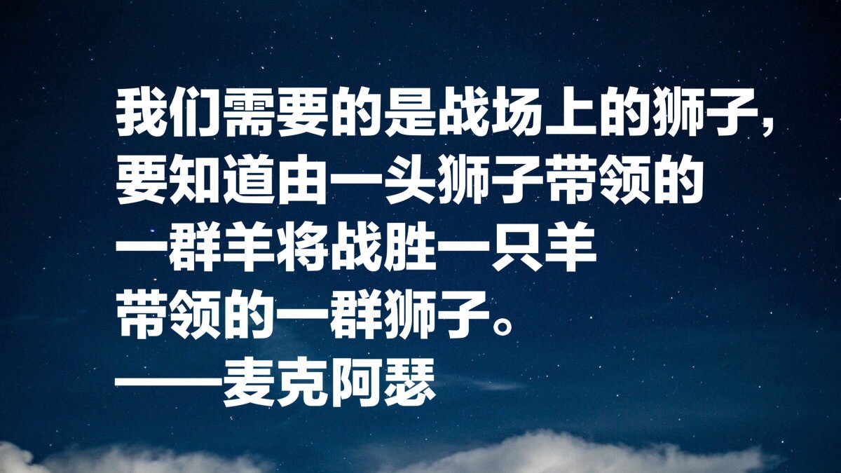 我们需要的是战场上的狮子,要知道由一头狮子带领的一群羊将战胜一只羊带领的一群狮子。——麦克阿瑟