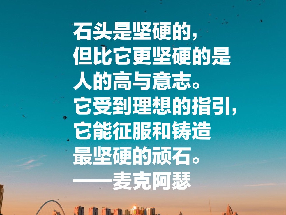 石头是坚硬的,但比它更坚硬的是人的高与意志。它受到理想的指引,它能征服和铸造最坚硬的顽石。——麦克阿瑟