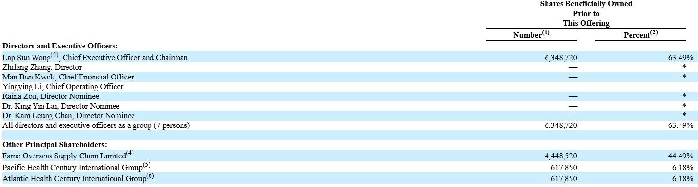 IPO前,Lap Sun Wong持股63.49%,Dongkun Jin、Tianruyi Jin分别持股6.18%。