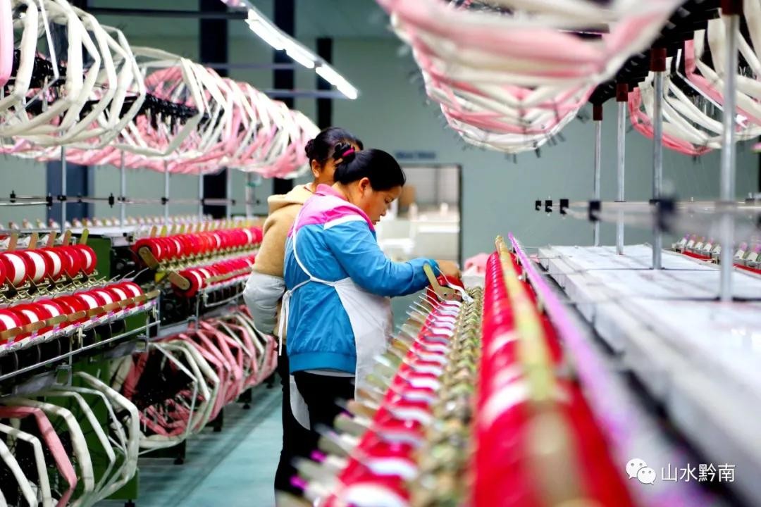 在独山县基场镇,龙头企业进驻带动了周边百姓进场务工,图为工人在设备前认真细致地工作 徐朦 摄