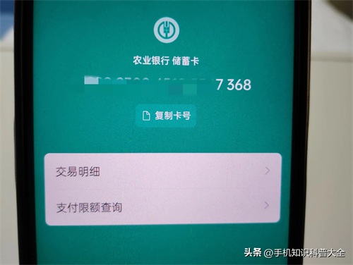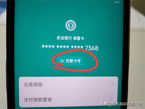 比如想知道绑定的这张农业银行卡的完整卡号,目前只能看到后 4 位,点进去(如上图所示)