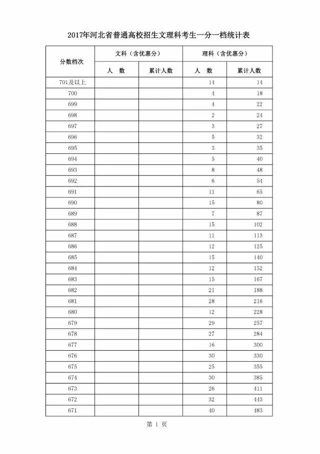 最新!燕赵都市报记者获悉,2017年河北省普通高校招生文理科考生一分一档统计表公布啦!请往下看!