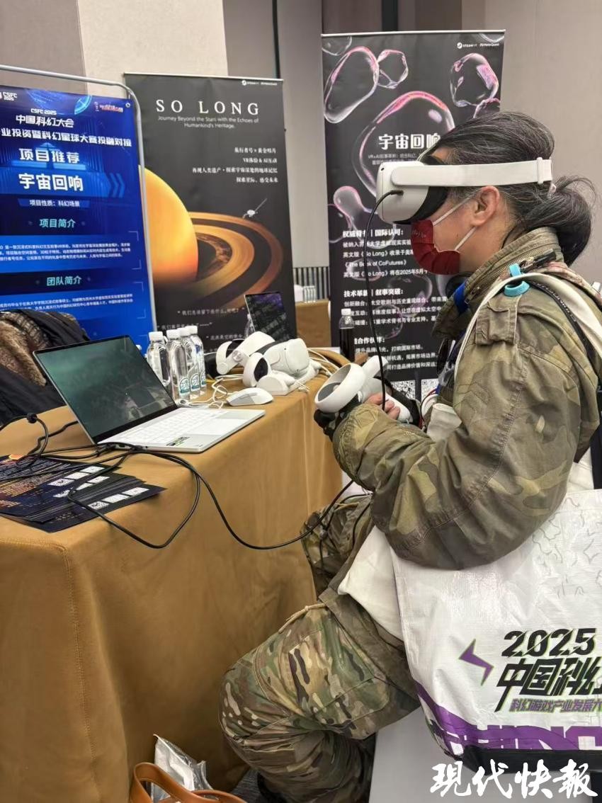 “我们想用VR技术复现旅行者号这场即将消逝的传奇。”来自苏州的《宇宙回响》团队负责人周天行在中国科幻产业投资对接会上介绍,团队依托苏州大学虚拟现实实验室,从加州理工学院获取了旅行者号的档案,破解了旅行者号搭载的黄金唱片的信息,融合空间音频、3D粒子特效、动态物理模拟和AI实时内容生成等技术,生动重现1977年旅行者号任务。