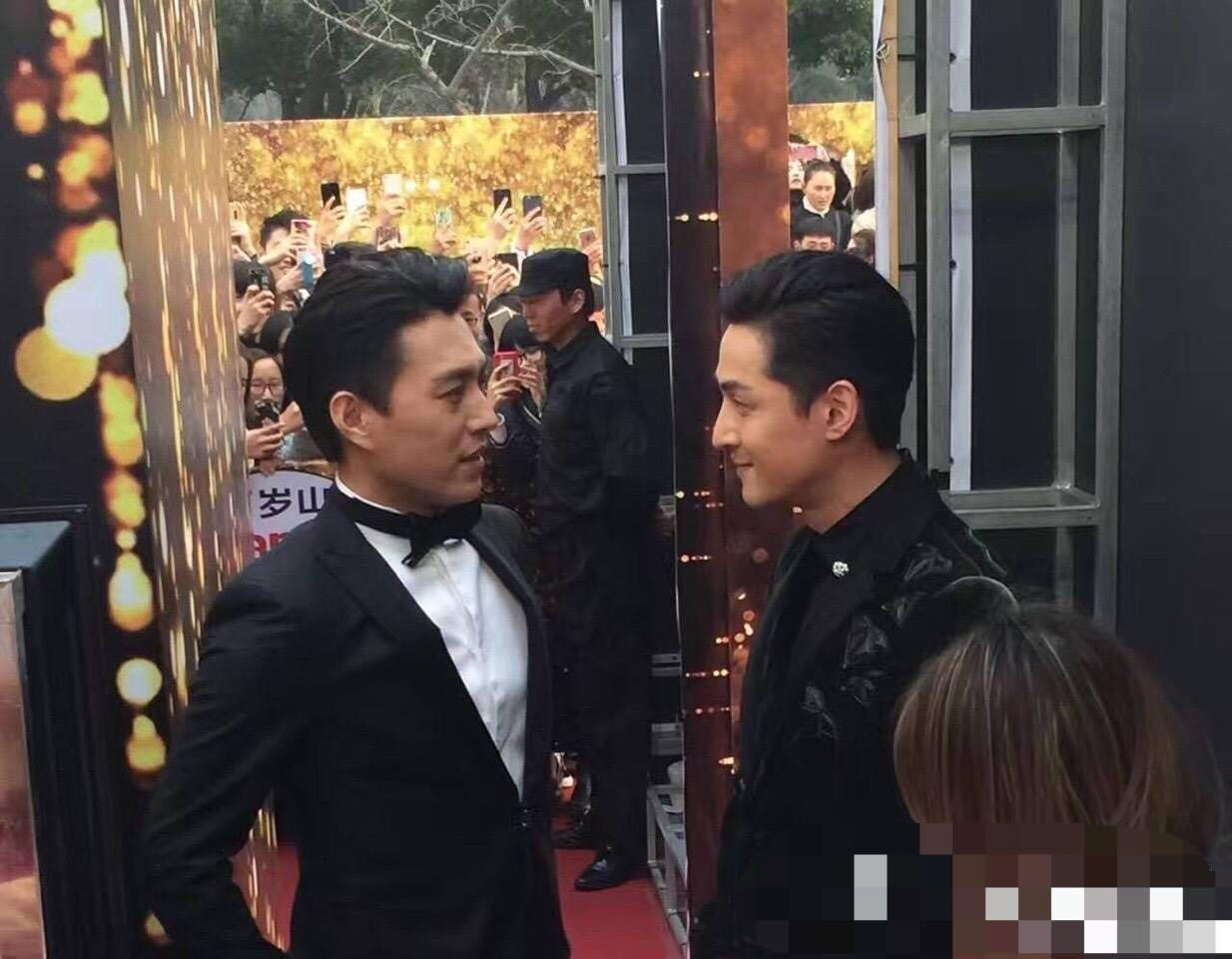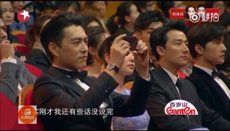 而胡歌在和生命当中的挚友在台上告别的时候,这位大哥在台下默默的用手机记录了这暖心的一幕