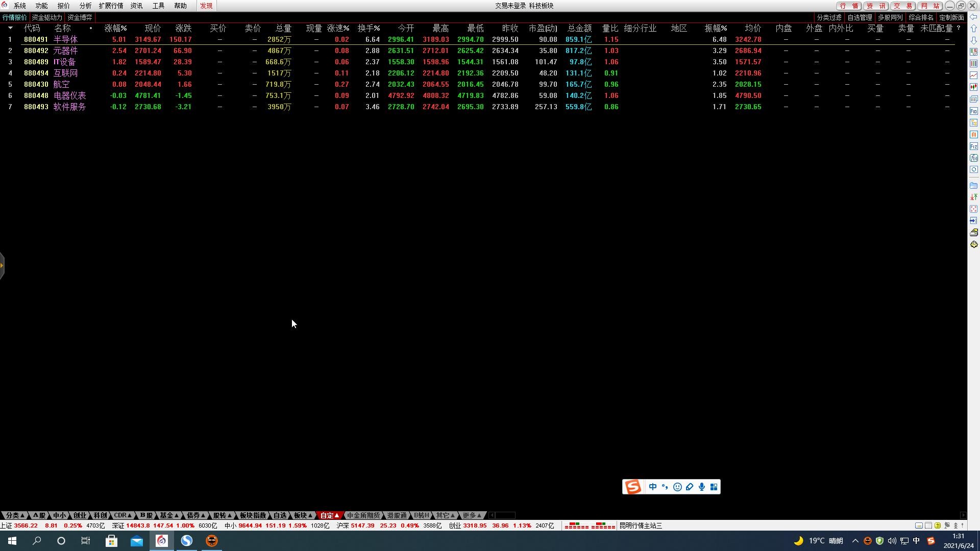 科技板块中以半导体丶元器件丶航空丶电气仪表丶软件服务等板块权重较大,对大盘影响较大。