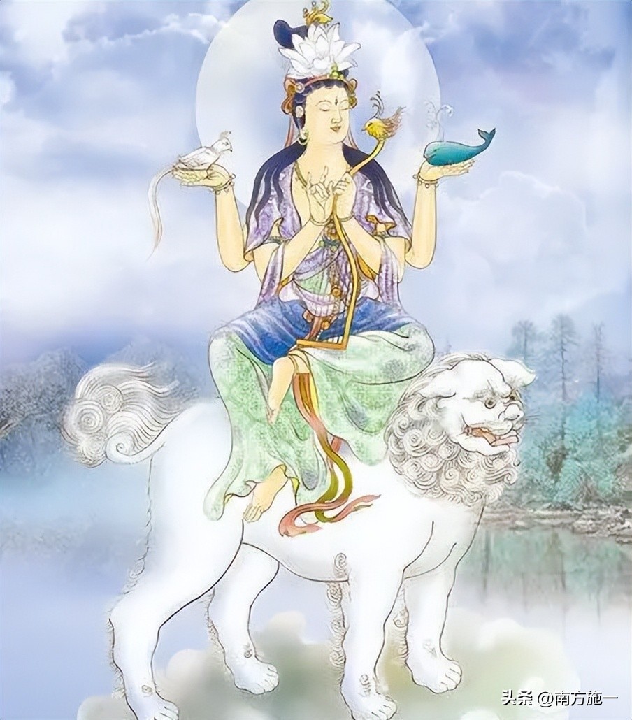 文殊菩萨是智慧之神。他可以用不一样的面貌去给世人传授佛法,给世人带来智慧和悟性,让诚心拜佛的人受到智慧的启迪。