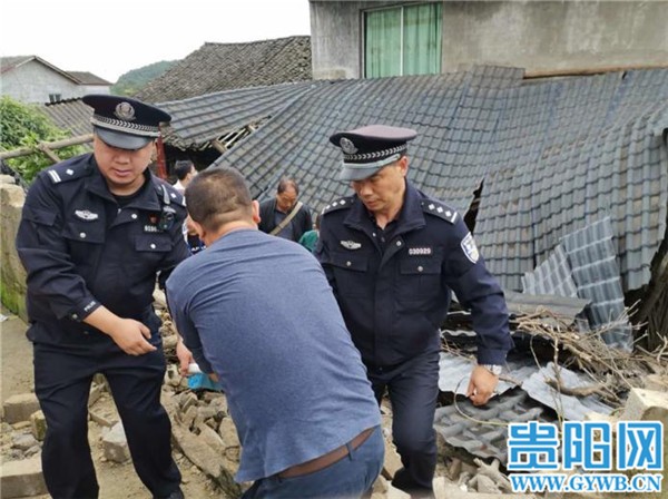 遵义一货车撞倒民房困住3人 民警徒手搬开梁柱救人