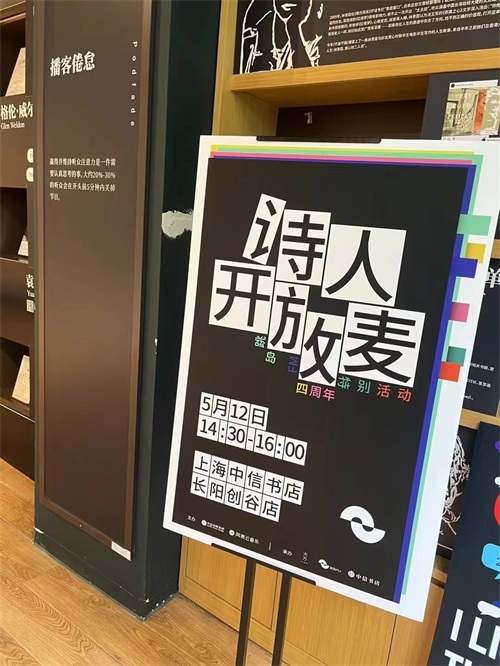 这一灵感来自今年4月,跳岛FM四周年的一次线下活动——“诗歌开放麦”。人气主播和听众线下相聚,每个人带着自己写的诗,就像脱口秀开放麦一样上台念。“现场让我们很震惊,也挺感动。”董越说,本来以为文学爱好者是一帮社恐的i人,但那次开放麦效果特别好,每个人都踊跃拿起麦克风分享自己的诗。