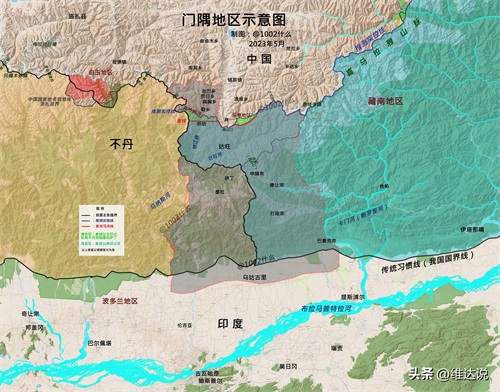至于所谓的门隅地区,历史上被视为神秘的地方,藏语称“白隅吉莫郡”,意为“隐藏的乐园”。门巴族在藏语中就是门巴人,所以门隅也就是“门巴人的土地”。传统上青藏高原东南、喜马拉雅山脉南麓的藏南这块区域,分为门隅、珞隅和察隅三部分,与门隅相邻的不丹,曾是朱隅,是最初藏传佛教噶举派的领地,后来因和硕特汗国推翻西藏藏巴汗政权,格鲁派达赖喇嘛取代噶举派掌权,朱隅才建立政权,但仍属于西藏藩属。而藏南三隅则一直归西藏直辖。