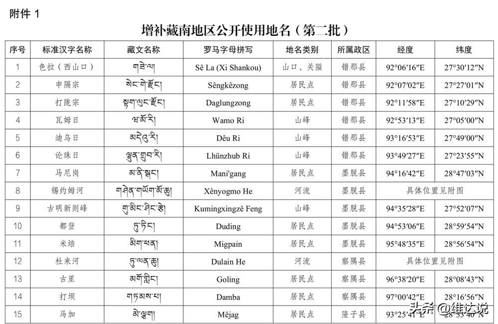 民政部公告第520号,正式公布第二批增补藏南地区公开使用地名(共15个)。