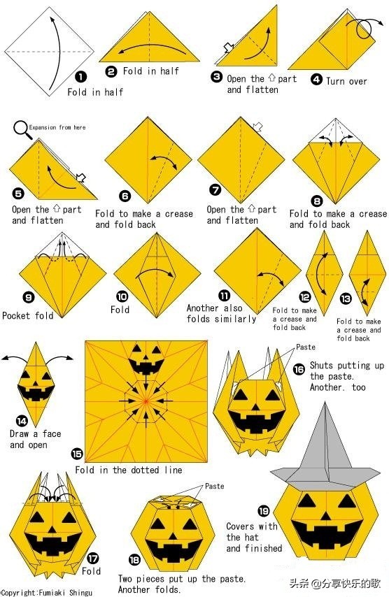 在南瓜上画上眼睛、鼻子、嘴巴,就做成了!