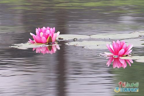 睡莲花倒影随水波舞动