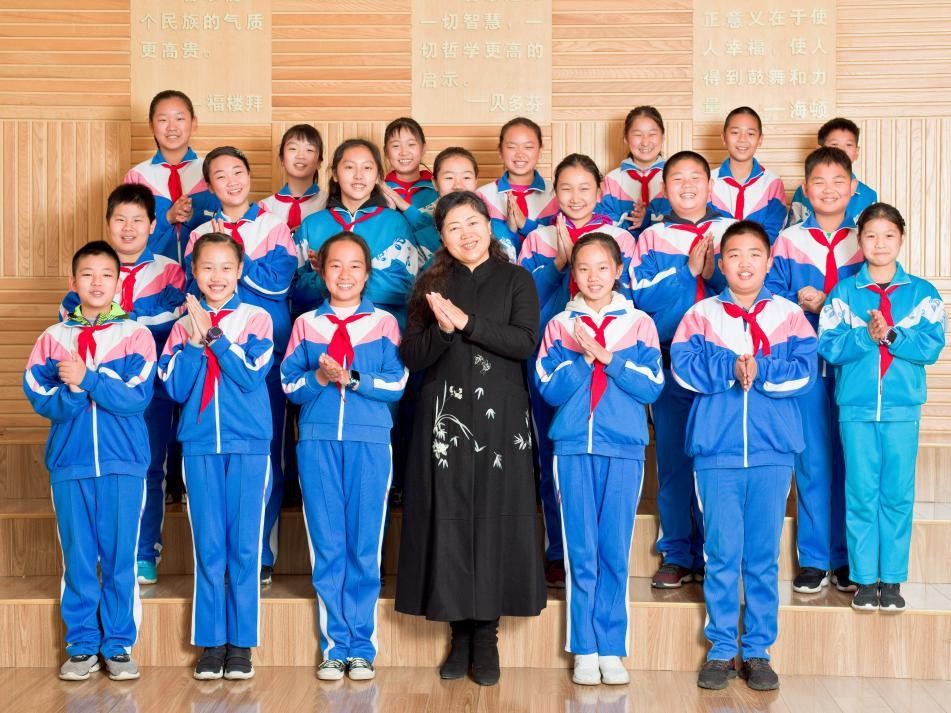 北京市海淀区培英小学校长祝莉娟和合唱团的孩子们